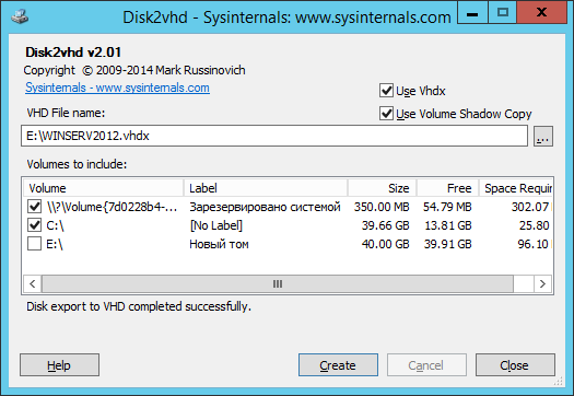 Рис. 1. Утилита Disk2vhd